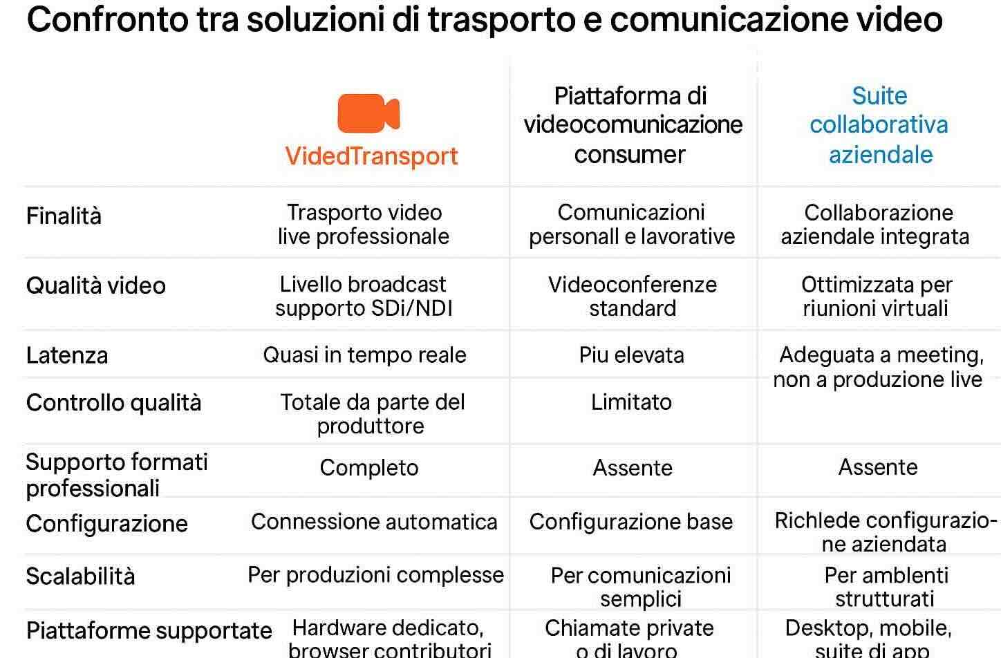 Unlike generic communication platforms built around conferencing UIs, VideoTransport only transmits the required video/audio signal, with no graphic overlays or interface limitations.