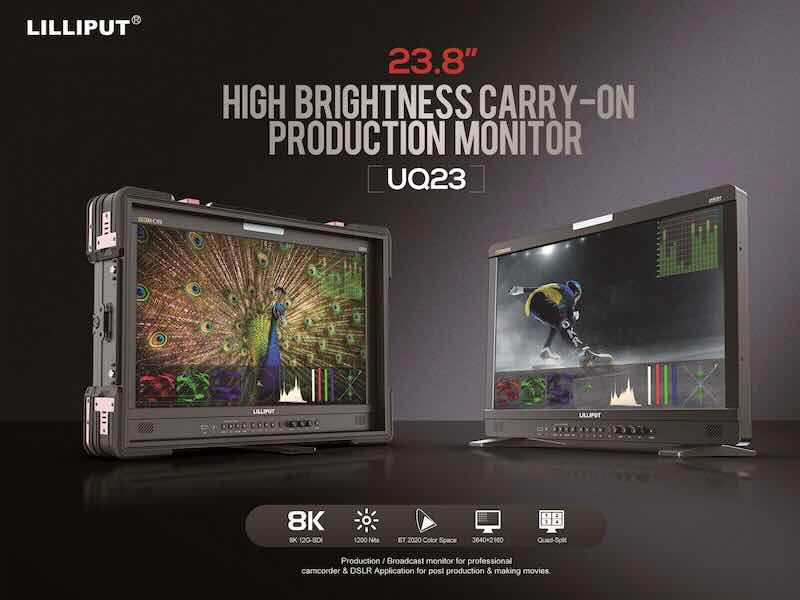 Il nuovo monitor 4K HDR da 23,8” di Lilliput offre un pannello 10 bit con risoluzione 3840×2160, rapporto 16:9 e luminosità fino a 1200 cd/m². Supporta standard HDR (ST2084, HLG), LUT 3D, profili Log (SLog, CLog, NLog, ArriLog) e calibrazione Rec.709, DCI-P3, BT.2020. Le connessioni includono 4×12G-SDI in/out, HDMI 2.0 e SFP+ per fibra ottica. Il monitor supporta segnali fino a 8K-SDI ed è dotato di audio embedded (SDI 16ch, HDMI 8ch), speaker integrati e jack cuffie. Il controllo remoto avviene tramite RS422, GPI e LAN. L’alimentazione da 15–24 VDC è compatibile con batterie V-Mount o Anton Bauer, per utilizzo in studio e su campo.